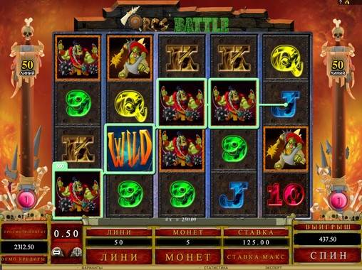 Orc’s Battle is a five reeled video slot with four rows of icons at the screen. Playing Orc’s Battle slot machine in possible by any quantity of active lines up to fifty available. It is possible to stake from one to five coins of value in range from one to fifty cents per line. This way, the maximal acceptable bet per line is one hundred twenty five dollars.