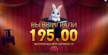 The cards in the magician's hand, a "magic" chest, white doves, a rabbit, an assistant and four letters representing cards from jack to ace appear on the video slot screen.