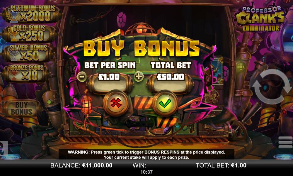 You can try the Professor Clanks Combinator slot machine from the Reelplay provider in demo mode on our Casinoz website for free without any risk.