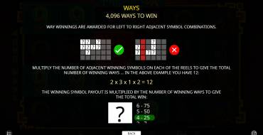 The paytable provides amounts of potential profits, explains the rules and demonstrates a diagram of winning combinations.