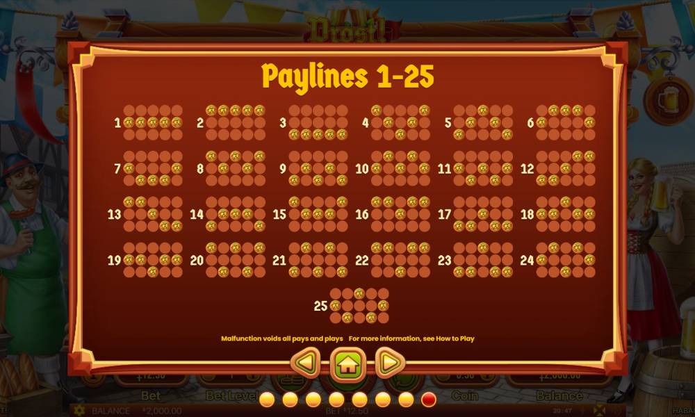 The Prost slot machine from the Habanero provider has a 5x3 playing field. Payouts are made on 25 lines.