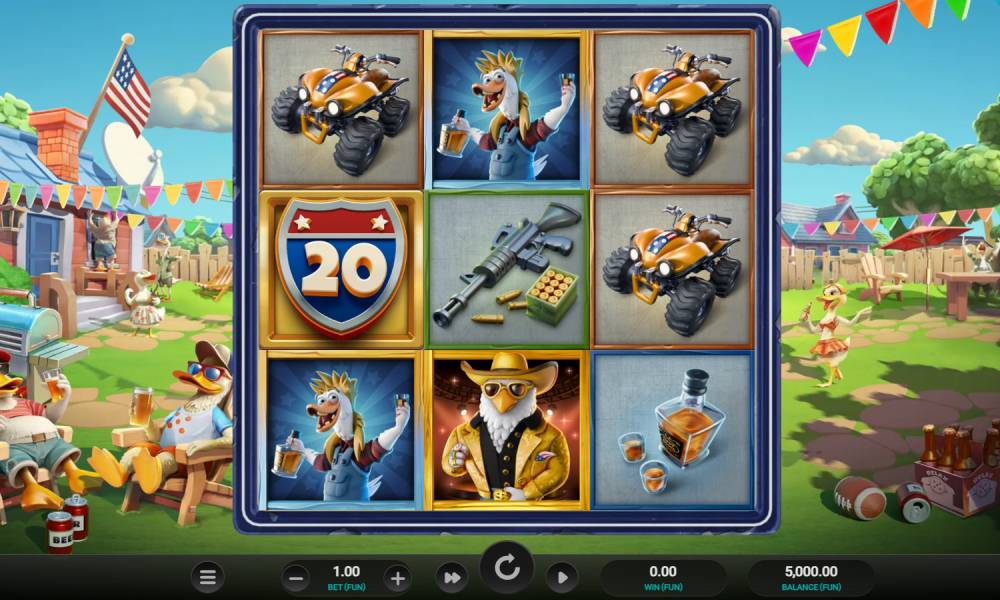 In September 2024 Maltese slots developer Relax Gaming released Quackin' Reels. The novelty is dedicated to an unusual theme: it features a team of ducks throwing a party dedicated to American patriotism. However, this does not prevent the slot from being interesting: it can present a payout of up to x8850. The gameplay is also interesting: Quackin' Reels has a small field, a small number of symbols and paylines. There are only 2 bonus features, but one of them works often, bringing variety and increasing winnings.