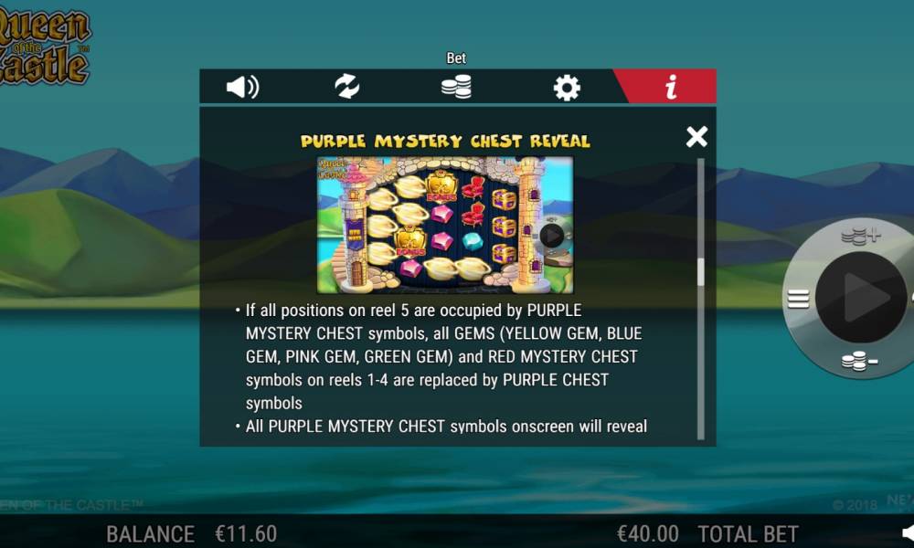 | Bonus games | Free Spins Bonus Game, Locked Reels, Red Mystery Chest Reveal, Purple Mystery Chest Reveal, Purple Mystery Chest Nudge, Red Mystery Chest Nudge |