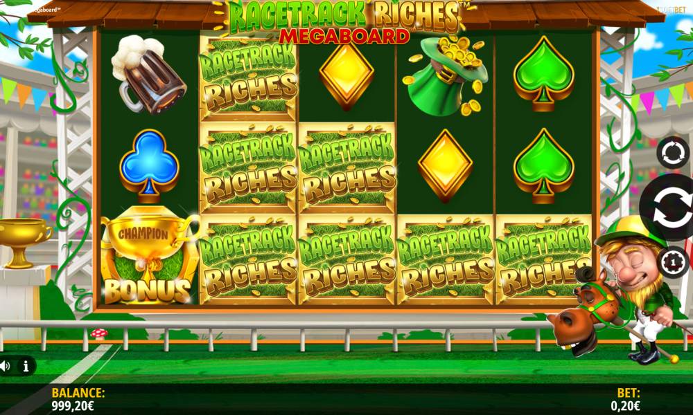 Racetrack Riches Megaboard is a video slot that features 5 reels and 20 paylines across a 15 symbol matrix.
