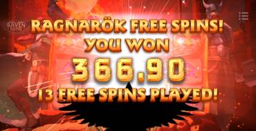 The game features free spins as a Ragnarok Free Spins bonus feature, triggered by the appearance of 3 or more Scatter. In this case: