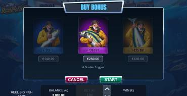 The provider claims several RTP values for the slot Reel Big Fish - 96.51%, 94.01%, 92.01% and 90%. The percentage depends on the casino where the bets will be placed. But it is important to remember that with a buy-in bonus the RTP is higher - 96.07%, 96.48% and 97.02%.