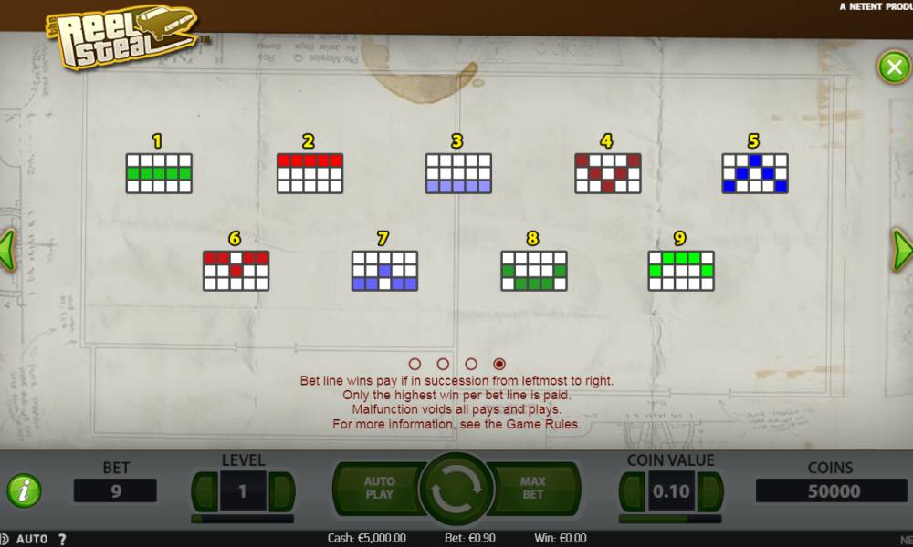 Reel Steal slot has 9 lines, they are fixed, meaning the player can only change the value of the coins.