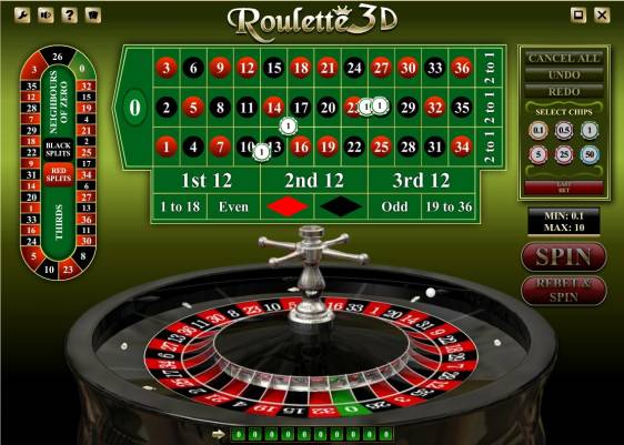 Roulette 3D has traditional European rules with extra call bets. Thirty-seven numbers (0 to 36) arranged in the traditional sequence are painted on the roulette wheel. The table layout has standard betting fields and one extra racetrack. The aim of the game is to predict the pocket of the wheel into which the ball will fall and get payouts for the bets made in advance. It is allowed to combine different bets at your sole discretion, but you cannot exceed the total limit. Gamblers can wager using chips whose denominations are: 0.10, 0.50, 1, 5, 25, and 50 dollars. The minimum bet is ten cents for all positions. It is possible to stake up to ten dollars on straight numbers. Any bet on equal chances cannot exceed one hundred and twenty-five dollars. The gameplay of Roulette 3D consists of the usual steps. The customer makes bets. The virtual dealer spins the ball. As soon as it lands, winning bets will be paid. There is no need to list all the positions on which users can wager in this model. The basic outside and inside bets are discussed in the article that deals with the common rules for roulette. It is important to note that bets on sectors, neighbors, as well as red and black splits can be made on the racetrack.