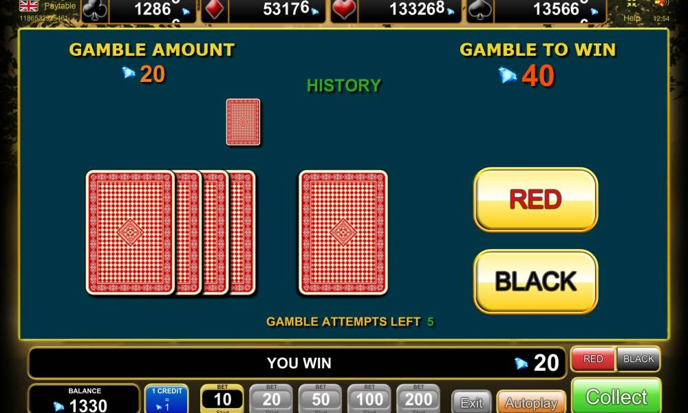 As soon as you receive a payoff, you would have to make a decision wether to collect money or stake it in the gambling feature in hope to increase the amount.