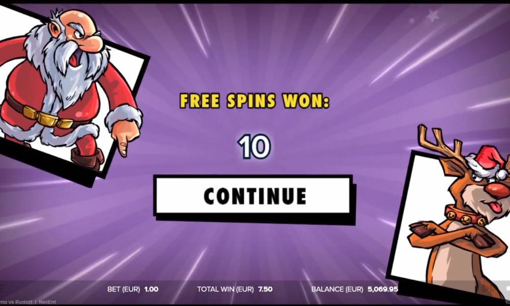Play Santa vs Rudolf slot by NetEnt to bring the furious animal to reason and save Santa's hat.