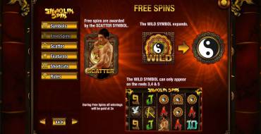 «Shaolin Spins» slot machine has five reels and three rows of symbols at the screen. The main aim of the game is to receive payoffs by the combinations, which are formed independently of the active lines here, but just at the neighbor reels. There are totally 243 ways of forming the winning combinations.