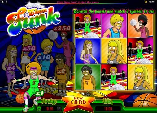 Slam Funk is a free online scratch card developed by Microgaming. Its value ranges from fifty cents to ten dollars (at Spin Palace).