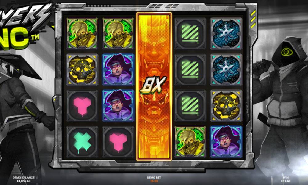 "Slayers Inc" is a dynamic slot from the Hacksaw Gaming that transports players to a cyberpunk world of battles between futuristic ninjas. The graphics and design perfectly capture the peculiar Japanese atmosphere of an imagined future.