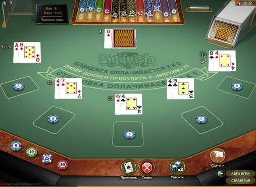 The main difference between this blackjack and most other types is the use of the so-called Spanish decks. They are standard 52-card decks without jokers and tens.