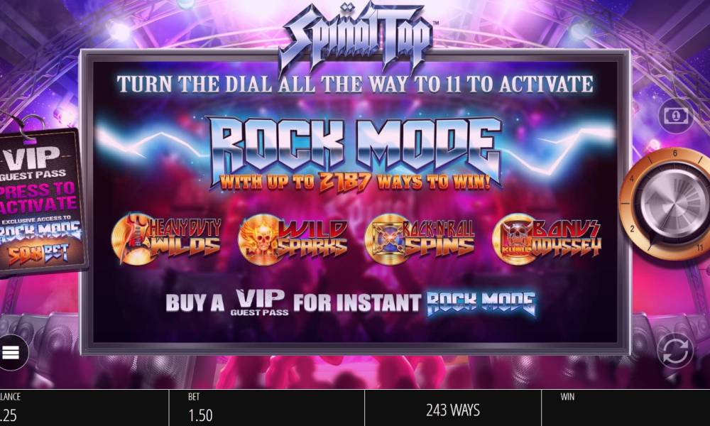 Spinal Tap slot has two ways to play, with risk - for money, and without risk - for free. Experienced players, and our team, recommend that you play the free demo version of the slot before risking your personal funds. This way you will be with the right knowledge and prepared for the real game.