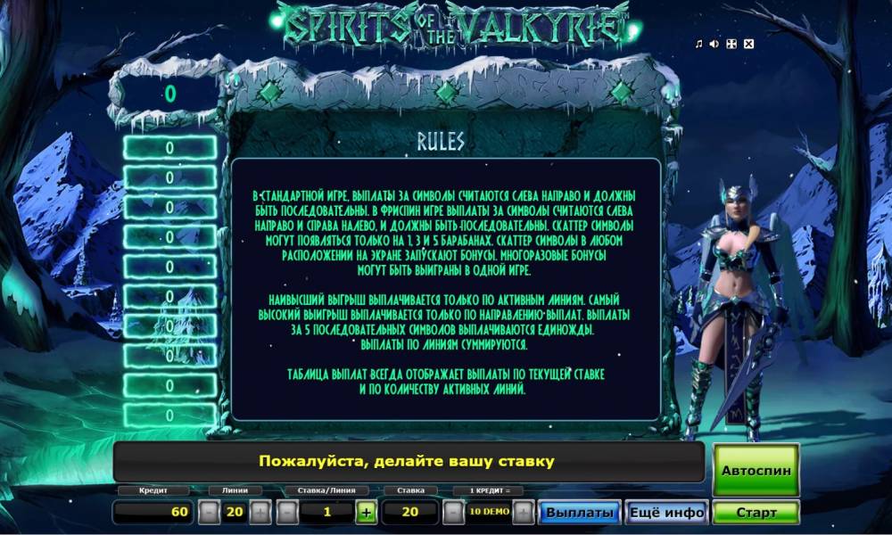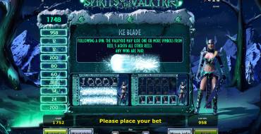 Payout calculation coefficients - from x1 to x500. They are multiplied by the line bet. There is no doubling round in Spirits of the Valkyrie. Risk game to increase the payout in this slot is not provided.