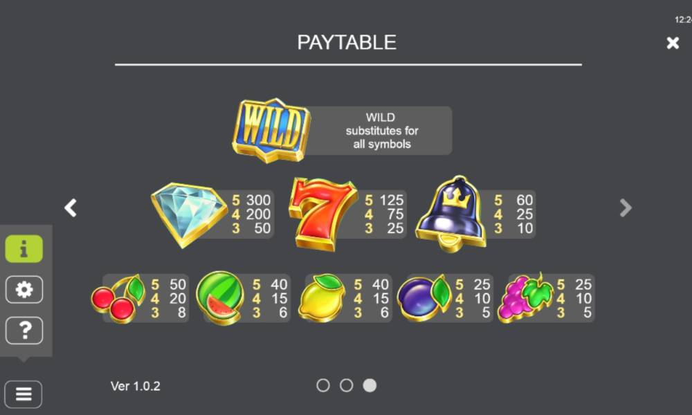 You can open the menu if you click at the button at the left bottom corner. There you can adjust settings, see the pay table and read the rules.