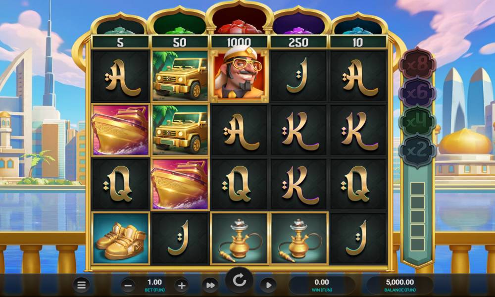 The word "sultan" is associated with untold wealth. And when a ruler has a lot of money, he can share it. In the Sultan Spins, the lucky player can get up to x5000 on the bet made. The slot is released by the provider Relax Gaming. Only it is not designed in the ancient Arabian style, but on the contrary: it is dedicated to modernity. Gold Mercedes, yachts, hookahs and expensive things will meet on the field, and in the background pleases the eye city with skyscrapers and minarets, standing on the coast.