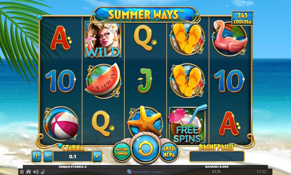 The Summer Ways from the Spinomenal is ready to offer users the atmosphere of the summer beach and the corresponding entertainment. Bright graphics, exciting gameplay and noteworthy bonuses await players!