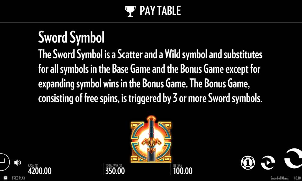 Sword of Khans features no thematic bonus game. Symbols get special functions during free spins discussed below.