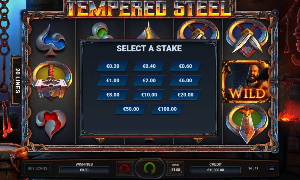 The Tempered Steel slot machine from the provider Yggdrasil has a classic 5x3 playing field. Payouts are made by 20 paylines.
