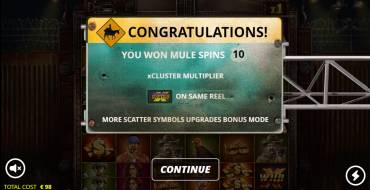 Mule Spins. Six Scatter symbols will activate 10 freespins. During them will appear signs xSplit and xNudge. A fall of another Scatter symbol adds 2 spins and the round switches to the one below.