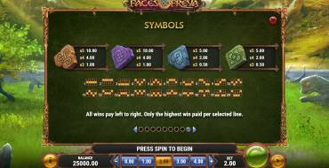 The Faces of Freya slot machine from the Play’n Go provider has a standard playing field, consisting of 5 reels with 3 symbols. Payouts are made on 20 pay lines.
