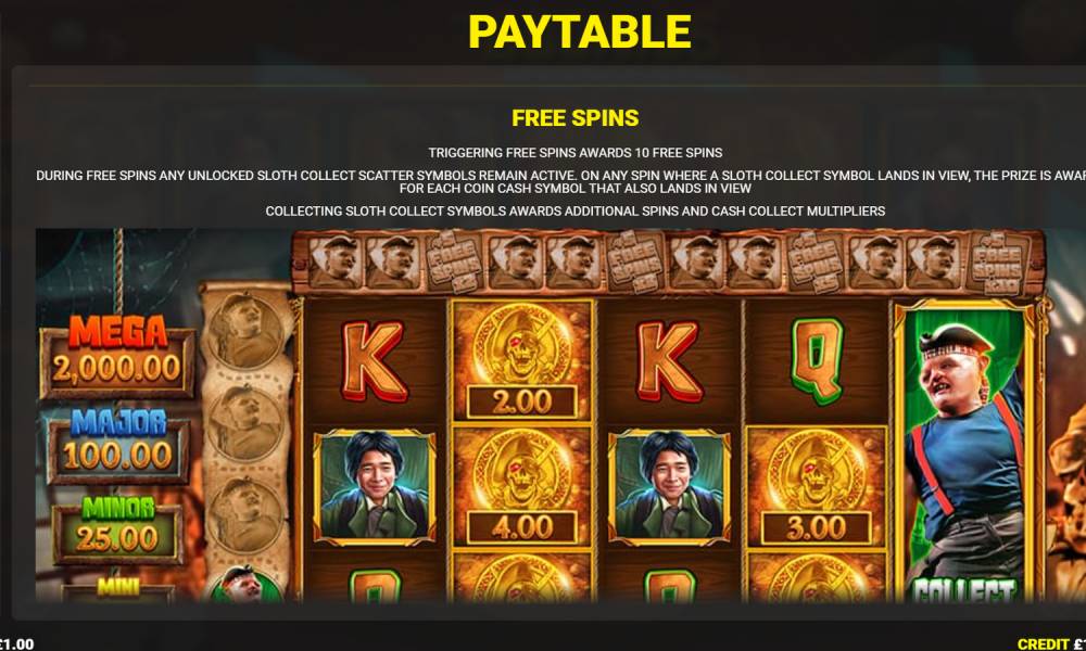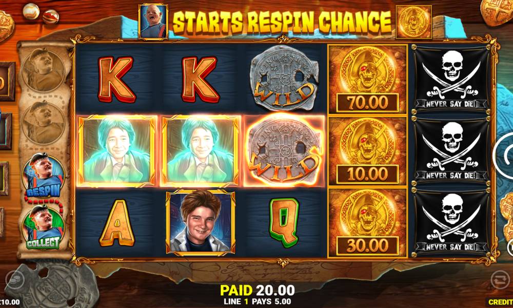 The Goonies: Hey You Guys! slot machine has a really unique theme. In it, four goonies go in search of treasure. On their way a lot of difficulties, because the pirates are waiting for them at every turn. The online slot is an unusual combination of fun and dangerous, simple and complex. The provider Blueprint Gaming has added the coin collecting feature and jackpots, which is a favorite of many players. So users can count on big wins and exciting pastime. Freespins, respins and modifiers will add drive to the game and help to whet people's excitement.