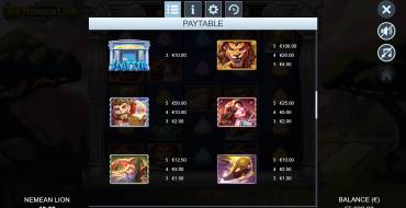 When first entering The Nemean Lion slot machine, it is worth immediately familiarizing yourself with the rules by opening the menu. Then you can go directly to the game: