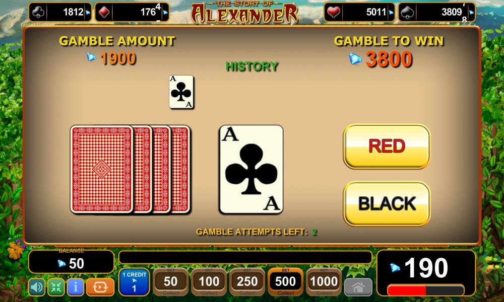 «The Story of Alexander» offers traditional for EGT jackpots, named after card suits. It is possible to win one in a special round, which may begin during a random spin. The higher your bet, more chances to win you have. Twelve cards are displayed at the special screen. It is possible to reveal them in any order. You’ll be picking the cards until you get three same suits. This determines which of the jackpots you win.