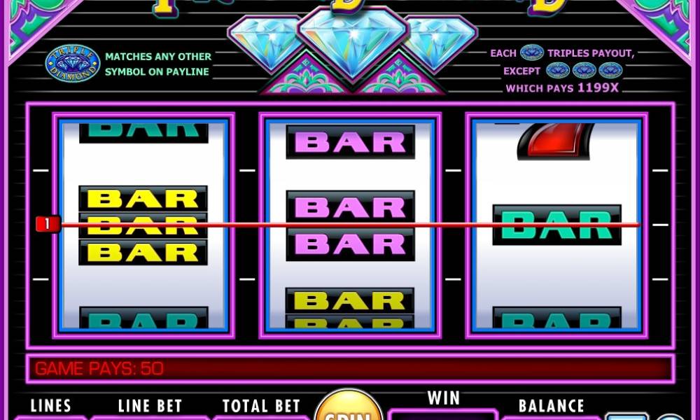 Well, here we would shortly explain the functions of the main elements of the control panel of Triple Diamond slot machine, which is available only in English language. The following tips would be useful for the beginners: