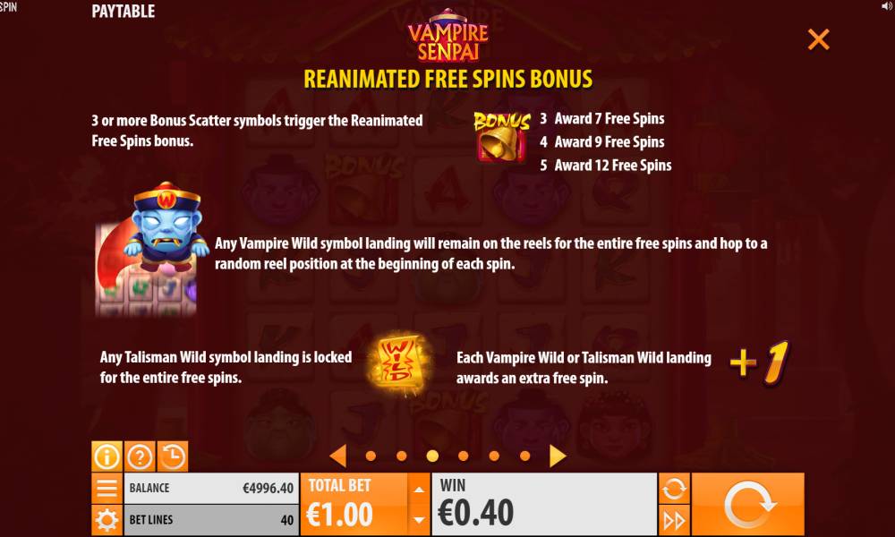 In the Vampire Senpai slot machine are the following features: