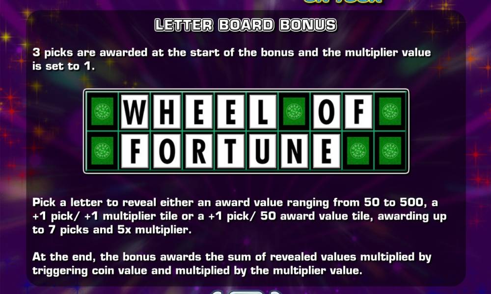 All symbols used at the reels of this slot are somehow related to the TV show of Wheel of Fortune and the modern American culture.