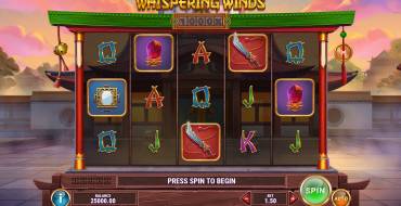 Whispering Winds slot from provider Play'n Go invites everyone to go back to the times of the samurai and try their luck in an attempt to get the hidden treasure. The game is made in a perfectly drawn style and its visual component was not once mentioned by critics. Free spins, coin collecting with respins and Mega Symbols await the player. Technical parameters make the slot as friendly to newcomers as possible. The average volatility leaves all chances for a pretty big score, because the maximum winnings are x2000 of the bet. The range of RTP values is made in such a way that there are only two acceptable indicators, and the rest will simply turn away casino visitors. Fascinating gameplay, frequent events on the playing field and a lot of free spins for risk lovers!