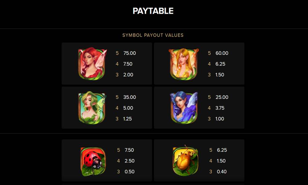 | Theme | Fruit/Vegetables, Adventure, Magic, Luck, Action, Fantasy, Nature, Flowers, Fairies |