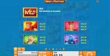 «Wins of Fortune» video slot has nine basic symbols and one special element. The game also offers free respins with a final super spin.