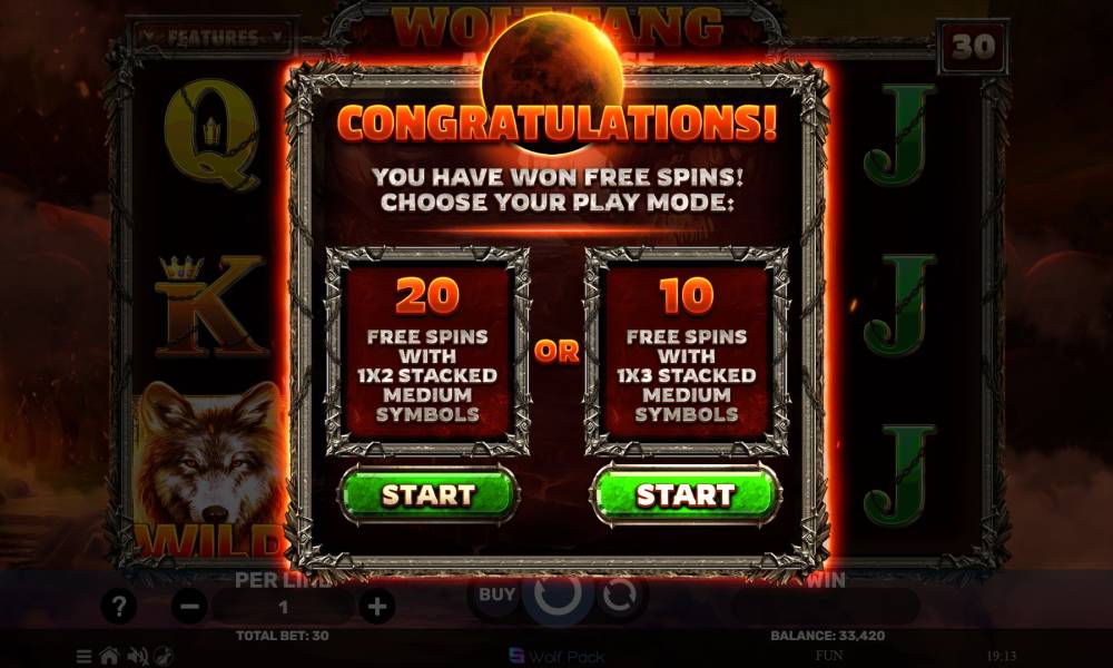 This time the provider Spinomenal has taken as a basis a very simple bonus mechanics that has been seen in its games many times. When triggering freespins, the user must make a decision that determines the number of free spins and the size of the bonus symbol. But the maximum win of x1000 bets can bring only a line of WIld symbols. I prefer more eventful slots, when even during normal spins something happens. However, my respect for the series of slots about the wolf and for the provider does not allow me to leave a bad review. The slot machine will find its audience thanks to the consistent quality inherent in the developer's products.