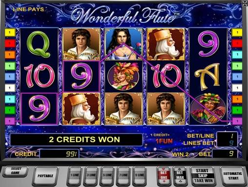 If you want just to test this slot machine without registration in a training mode, you can launch it right at Casinoz. To make it, just click at the screenshot in the beginning of the review. Meanwhile, it is possible to play Wonderful Flute video slot by the real money in the online casinos, which present games developed by Novomatic.
