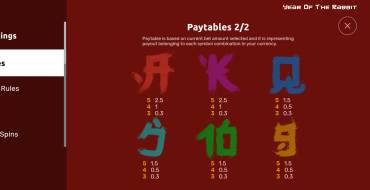 When playing Year of the Rabbit, it's important to remember, that there is no 100% guaranteed winning strategy. Gambling, including including slots, are always based on chance, and the outcome of each spin of the reels is unpredictable. This means that the winnings depend on luck and not on any algorithm. It is important to realize that no strategy guarantees winnings, and each spin is independent of the previous one. Play wisely and remember that winnings will always depend on luck.