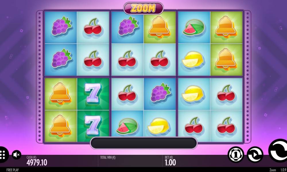 As it was already mentioned above, all cells at the screen are divided into six groups by four positions each. If Zoom appears at one of them, it fills all four cells by a single Massive Symbol. In situation when Zoom is imaged at four neighbor groups, it turns into the Super Massive Symbol. How exactly it happens, you can see in the pay table.