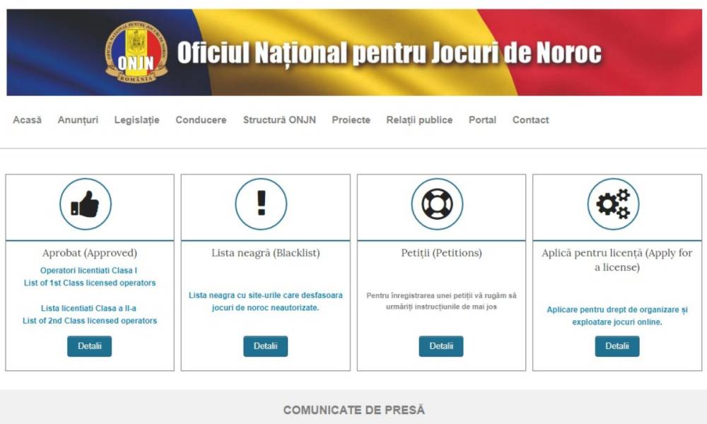 Oficiul Național pentru Jocuri de Noroc (ONJN) is a gambling regulator in Romania, which started its activity in 2013. This organization is engaged in the regulation of online gambling and land-based gambling. The department issues gambling licenses not only to operators who decide to open a casino, but also licenses the activities of casino software manufacturers, payment services, and other companies involved in the industry. Given the relatively small experience of ONJN, we note that the regulator is quite wealthy and develops not only the gambling business in the country for the sake of companies but also to take care of players. On the website, you can complain about any casino (online or offline).